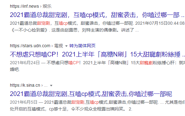 連不少的甜寵劇都主打嗑男女主的甜甜cp