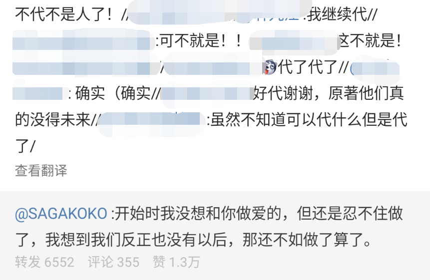 恍惚之間有一種賽博越共的感覺,這些神出鬼沒的同人女會在無數條微博下面打上“代了”兩個字,不知道箇中底細的人還以為是什麼神秘組織的行動代號,只有同為吃不上賽博飯飯的人才能看得出來,這是又一位追星/同人女在繁忙的生活中網上衝浪時隨便吃下的一口代餐。