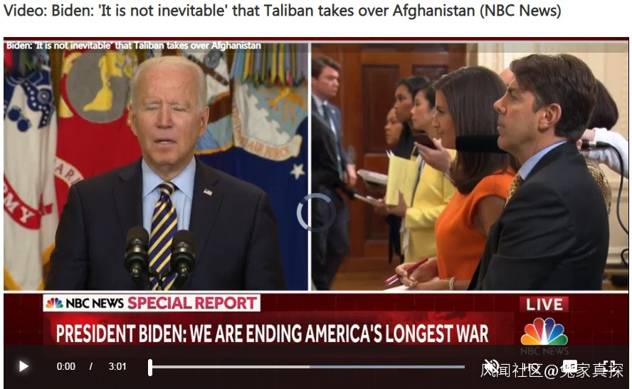 NBC: 喬拜登總統無法説出他決定迅速從阿富汗撤軍的明顯真相:沒有好的撤離方式,美國在 20 年的戰爭中失去的比獲得的更多,塔利班現在幾乎肯定會接管。