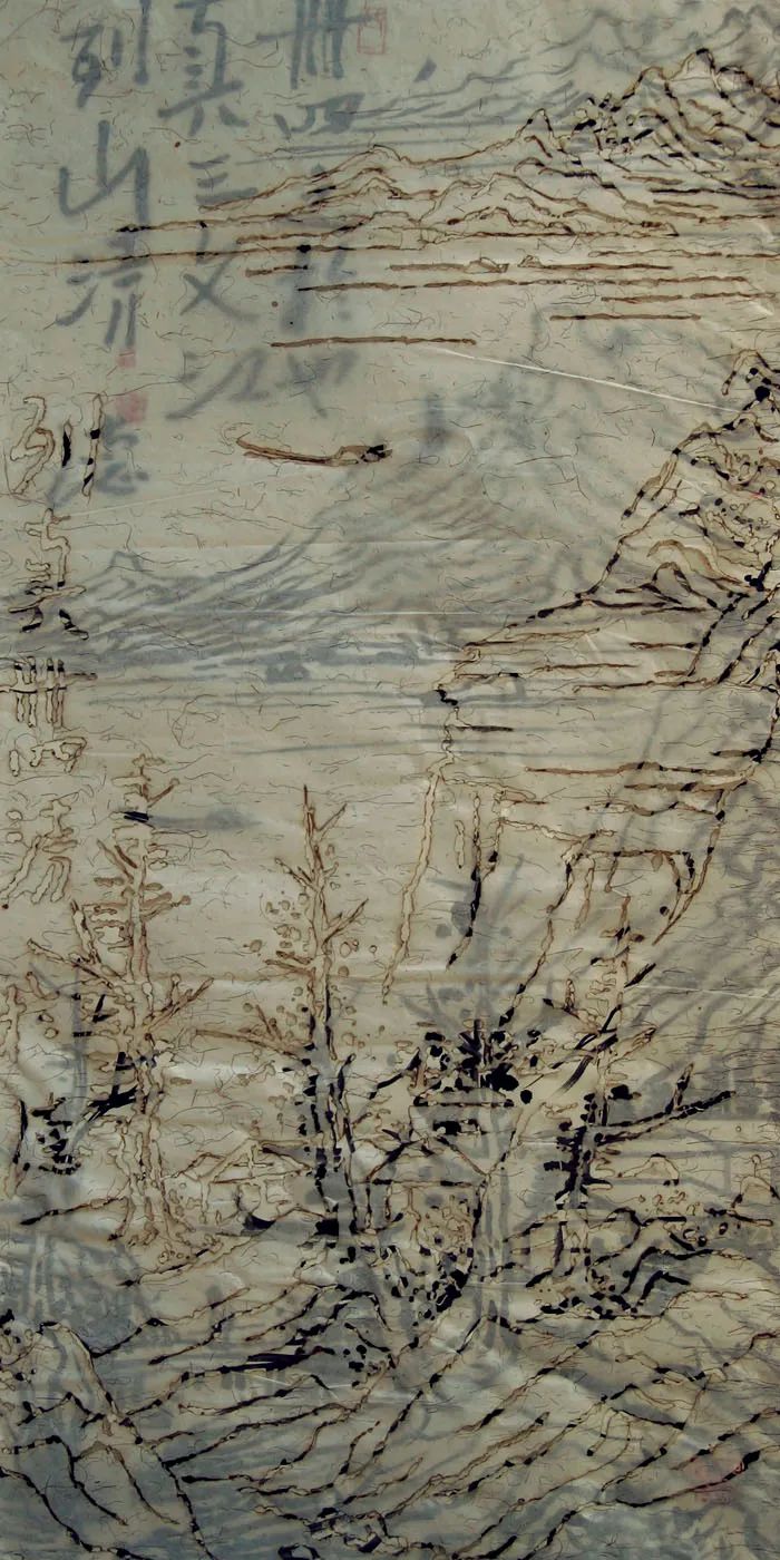 這又引發了關於現當代水墨創作的第二個大爭論:不再使用傳統的筆墨技法,甚至不再使用毛筆或者宣紙作畫的現代水墨,是否還能稱之為水墨畫?