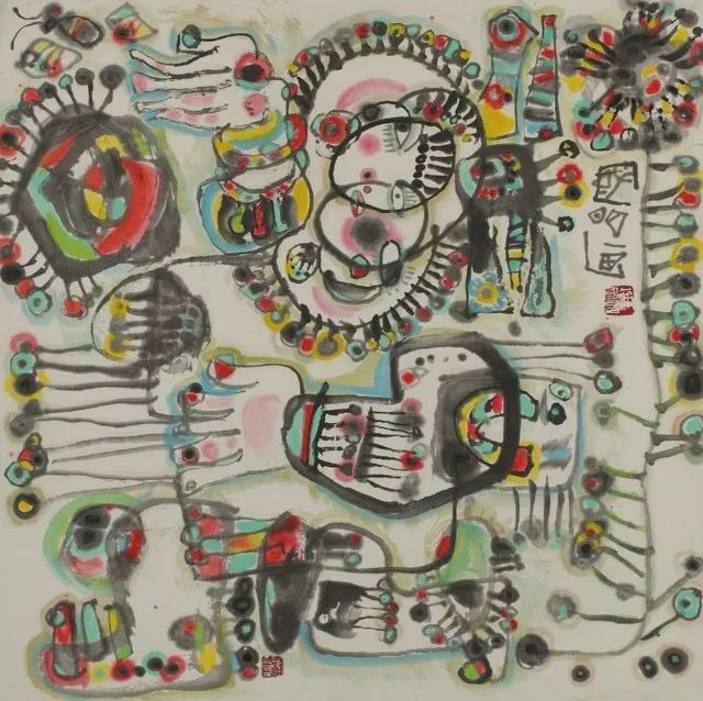 一些畫家將民間壁畫、剪紙、年畫、刺繡等民間傳統藝術融合到水墨畫中,讓人耳目一新。
