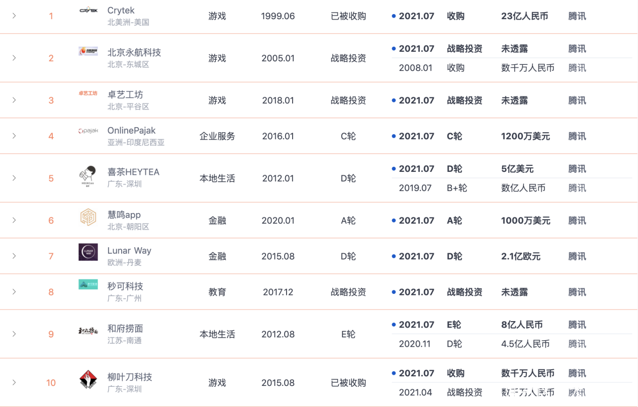 與阿里不同,騰訊的投資版圖中,遊戲向來是其佈局最多的板塊之一。僅2021年,騰訊就投資了27家遊戲公司。其中,阿里已投的青瓷遊戲,騰訊也同樣沒有錯過。