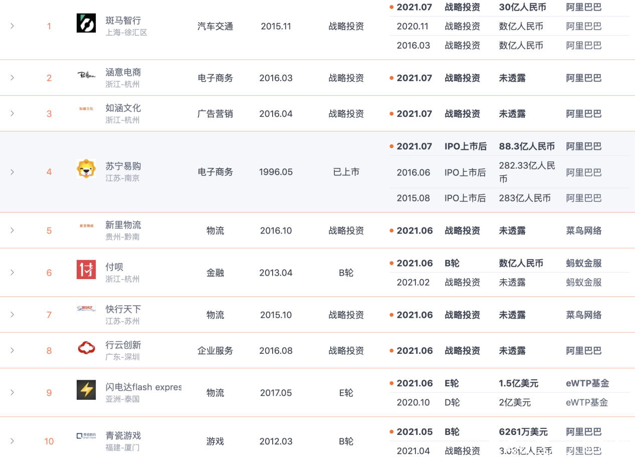 從投資項目行業分佈來看,阿里在金融、交通、生活、文娛、企業服務、電商和物流等行業中的投資活動比較頻繁。