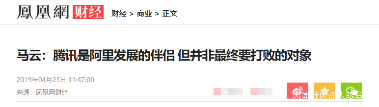“今天騰訊是阿里巴巴的競爭對手,沒有騰訊,就不可能會有阿里巴巴今天的不斷進步,對騰訊來説,阿里巴巴也是如此。所以對阿里巴巴來説,騰訊像個伴侶。”