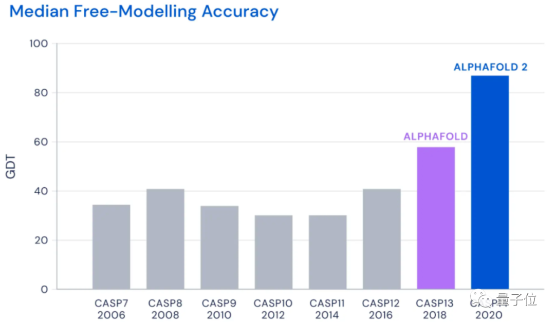 直到去年12月,Alphafold2出現,將這一準確性直接拔高到了92.4/100,和蛋白質真實結構之間只差一個原子的寬度,真正解決了蛋白質摺疊的問題。