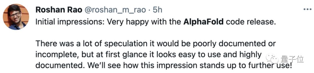 來自UC伯克利AI實驗室的博士Roshan Rao在看過後表示,這份代碼看起來不僅容易使用,而且文檔也非常完善。