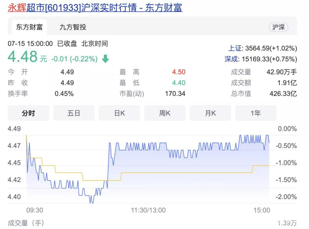 這種趨勢不光讓永輝的超級物種經營舉步維艱,同時還會影響到投行對永輝估值和市盈率的看法,最終影響到投資人對股價的漲跌認定,導致如今永輝的股票被一些投資人拋售。