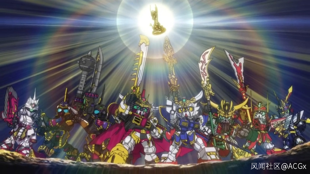 融合了日本鎧甲武將要素的武者高達,從模型變成了漫畫作者筆下的《SD戰國傳》,自1988年開始以大量漫畫、動畫逐漸完善了這一世界觀,憑藉武士七人眾等極具個性的人物,吸納一批死忠粉絲。隨後又推出了西方奇幻風格的“SD高達外傳騎士物語”、借鑑三國故事的《SD高達三國傳》《SD高達世界:三國創傑傳》,以及亂入其他作品人氣角色的《SD高達世界:羣英集》等等。SD高達這種不斷融入各種文化IP的“大雜燴“式的角色塑造,依託的是文化IP的影響力、各自獨立嚴謹的世界觀、針對特定受眾的故事以及外形極具特色的模型玩具,形成了包括玩具、卡片、遊戲、漫畫、動畫在內的多個分支。