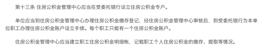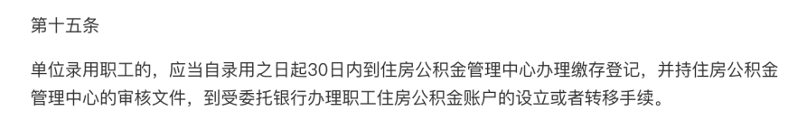 《住房公積金管理條例》第十三條、第十五條、第三十七條也有相關規定,單位錄用職工的,應當自錄用之日起30日內到住房公積金管理中心辦理繳存登記。
