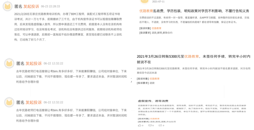 甚至有學員表示,優路教育的招生老師欺騙他初中學歷也可以報考二級建造師,現在遇到了退費難的問題。種種問題不一而足。