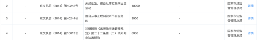 此前,據天眼查信息,環球優路還曾於2014年因涉嫌附送《出版物市場管理規定》第二十二條第(二)項所列非法出版物等問題被北京市文化市場行政執法總隊處罰三次。