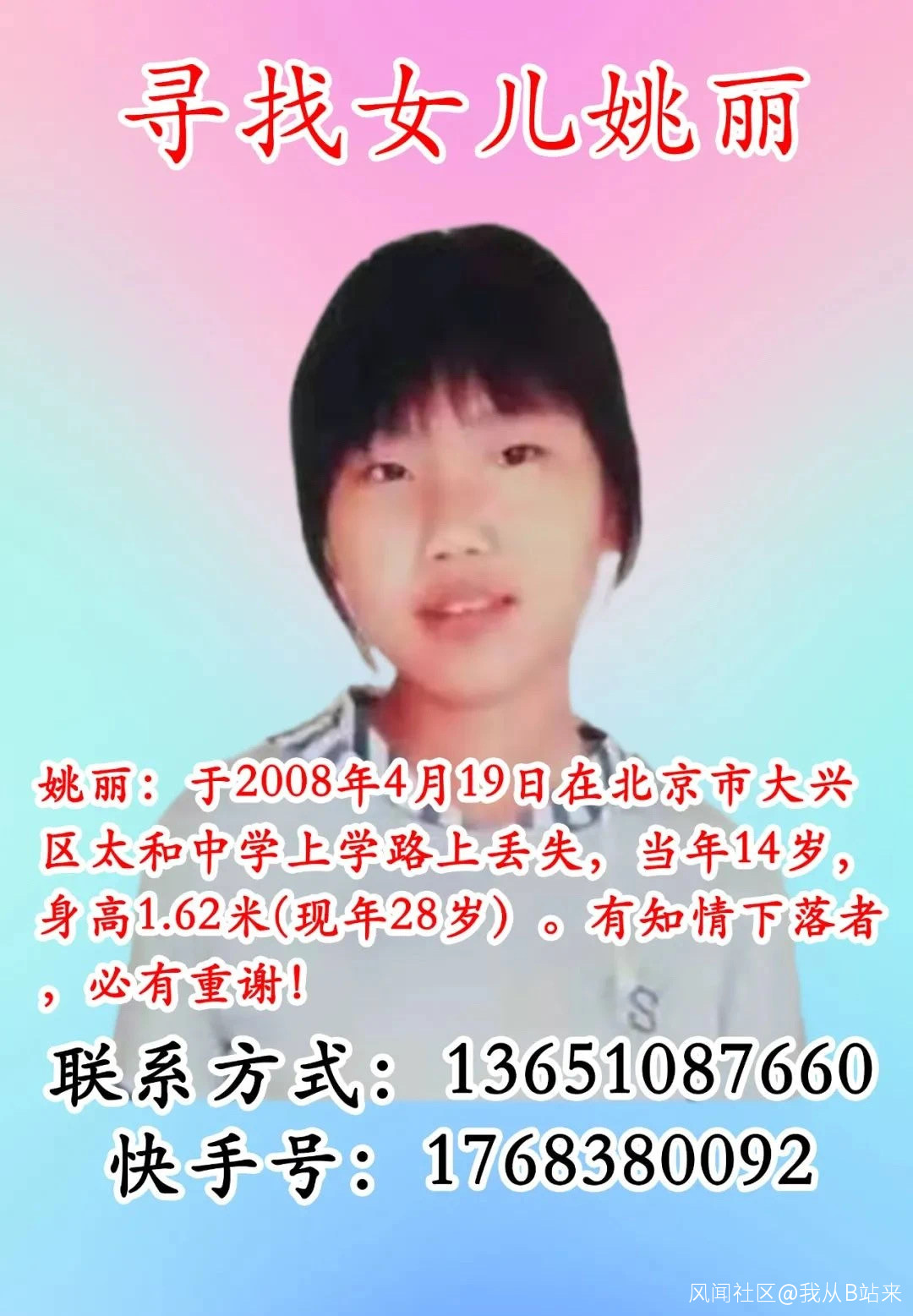 (可以看完對我寫的東西不屑一顧,但希望能轉發尋找姚麗的這張圖,此致,敬禮)