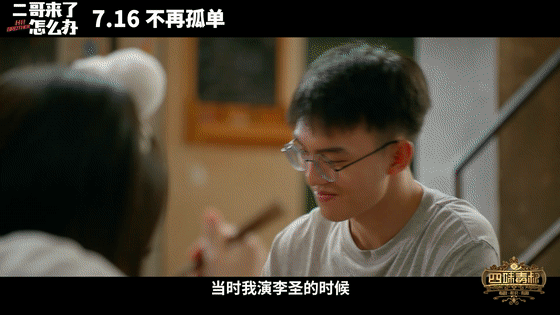 **譚飛:**我自己有個妹妹,比我小一歲,現在還很喜歡流量明星,有時候我還諷刺她。但是我一看完這部影片,我真的覺得這種兄妹情是很真實的。在戲裏兄妹完全打在了一塊,所以我覺得氛圍營造還是蠻成功的。李聖從7歲開始就拍戲,你是童星。
