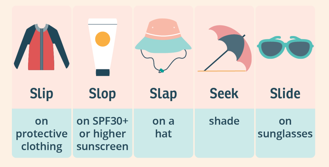 海邊度假及遊玩時,可遵循以下5S原則,確保自己的皮膚儘量避免紫外線傷害。