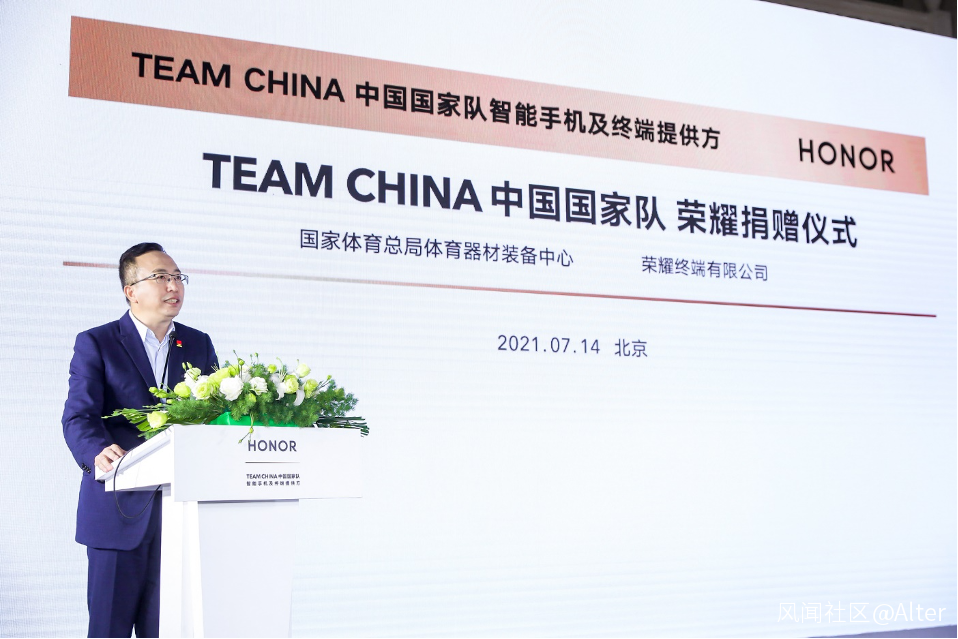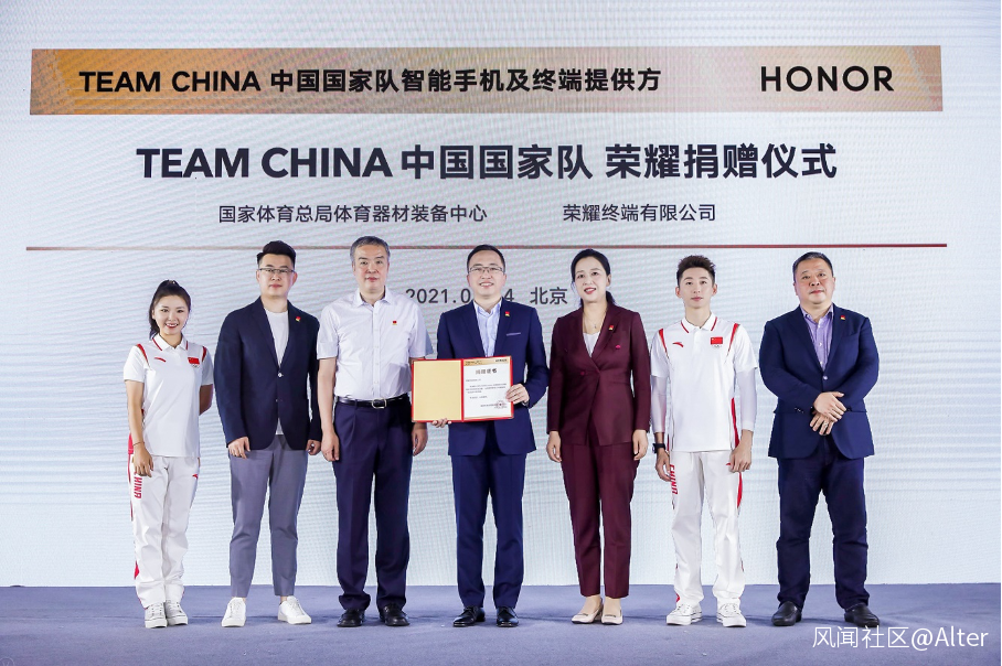 7月14日,榮耀和國家體育總局裝備中心聯合舉行了捐贈儀式,榮耀向TEAM CHINA中國國家隊捐贈了包括榮耀50 Pro、榮耀手錶GS Pro、榮耀耳機Earbuds 2 SE等多款產品,幫助運動健兒們在賽場上續寫體育傳奇。