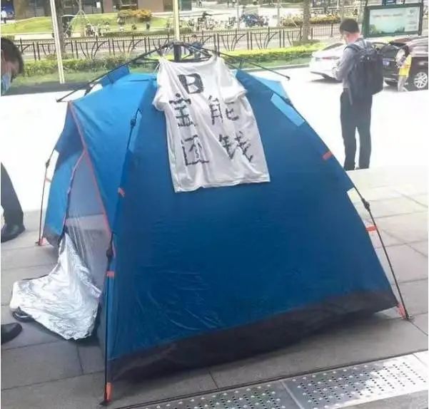 前些天,討錢的小夥伴直接帶上帳篷,睡在了總部門口。