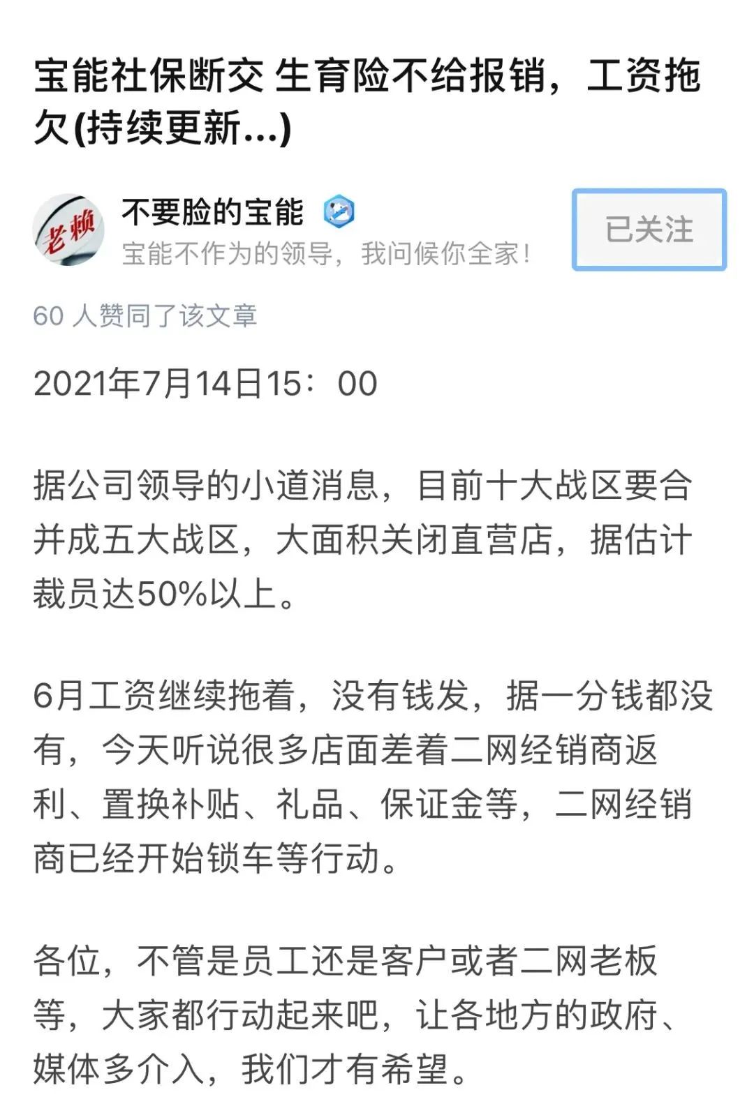 6月份的時候,寶能旗下新能源汽車獲廣州國企120億戰投,是件鼓舞人心的事。沒想到,有汽車媒體報道後,文章評論區齊刷刷都是來討薪的。