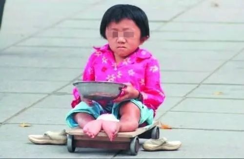 無數被拐小孩被迫上街乞討,一部分還會被砸斷胳膊、腿偽裝成殘疾人行騙。