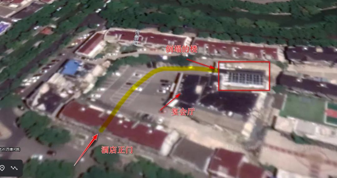總圖跟衞星地圖也完全能對的上,坍塌的就是衞星圖右上角的樓,樓體看起來非常老,磚和牆都包漿了。
