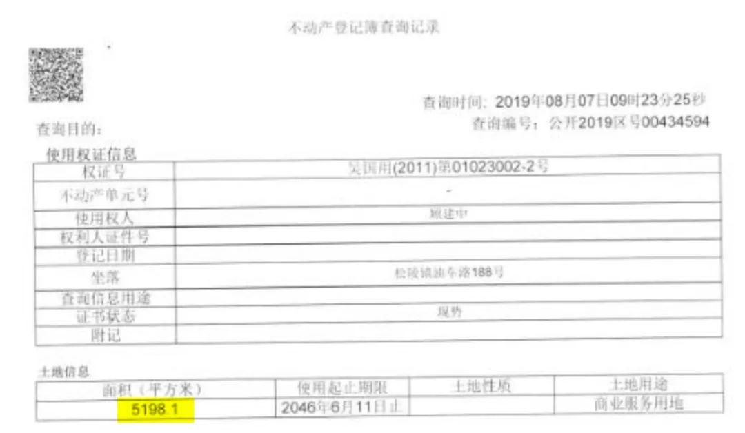 不動產登記冊上,這塊土地的面積是5198.1平方米