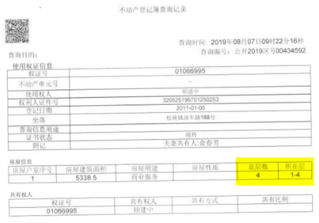 當然有疏漏的不僅僅是評估公司,還有不動產登記冊上,也寫得清清楚楚,這個油車路188號的旅館,總層數是4層!!!難道大家是都不識數了麼?3層老樓和4層新樓,高度理論上差不少吧?顏色也明顯差不少吧?沒理由看不出來啊……