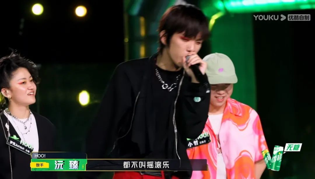 **HOO!樂隊和熱浪樂隊的“偽搖滾”之爭,恰是節目對於多元價值表達包容性的明證。**熱浪的主唱綱子表演完,説知道有樂隊看不慣他們歡迎挑戰。HOO!樂隊的沅臻一點就着:“我真忍不住想‘幹’他了!”