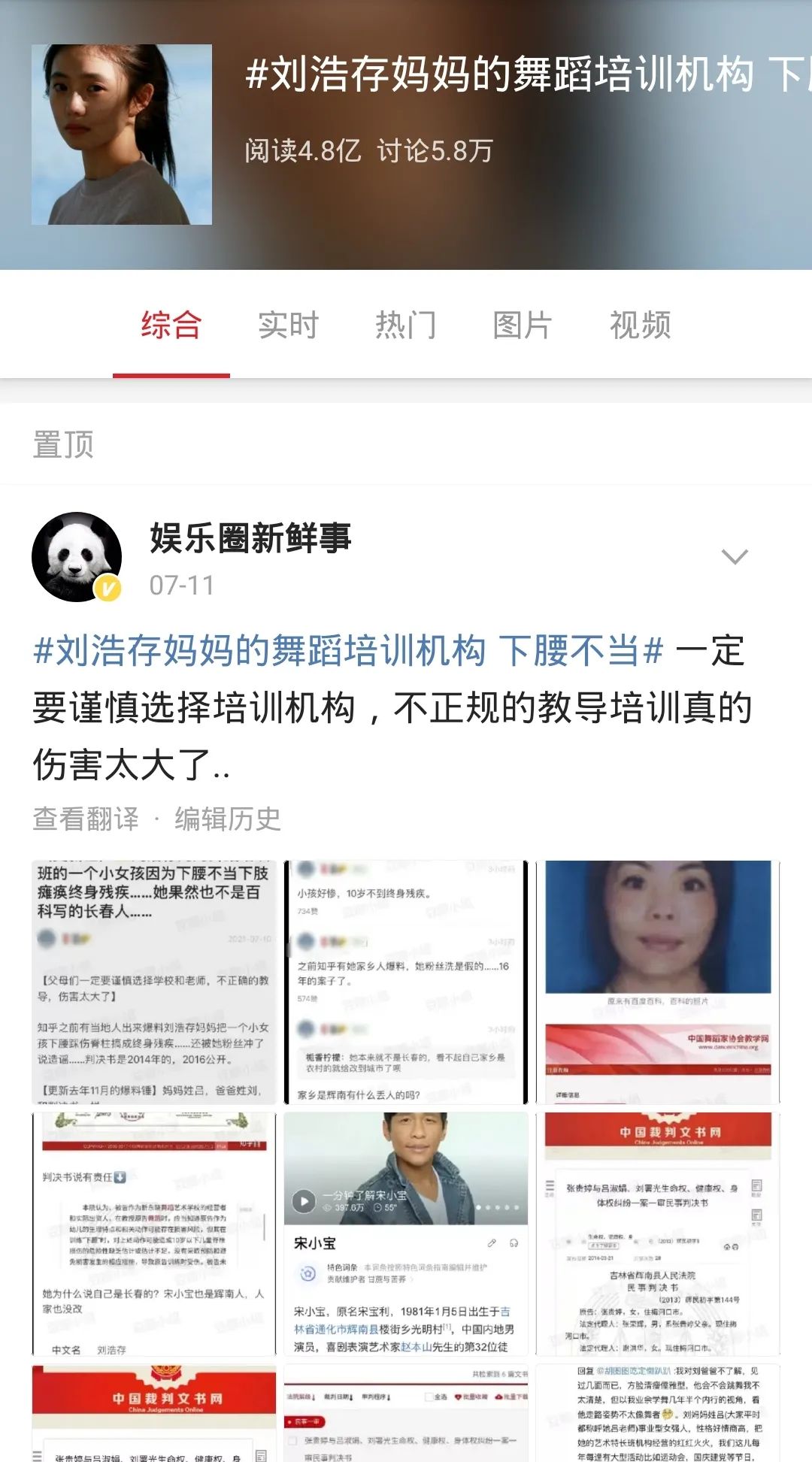 緊接着沒幾天,一條“劉浩存父母開辦的舞蹈機構不當下腰,導致一名七歲女孩下半身截癱”的舊聞,帶着“劉浩存”的話題和名字,掀起熱議。