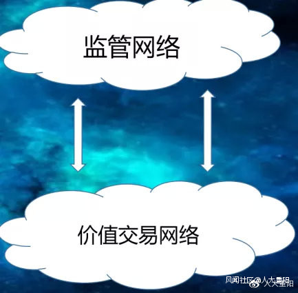 **當鏈從事交易與監管時,監管網絡最好要和價值網絡分開。**下圖這個網絡一分為二,這是我在2018年提出的,監管網絡和交易價值網絡分開,而監管網絡的設備應該比價值交易網絡更加強大,它能夠進行大數據分析、人工智能分析、實時監管。
