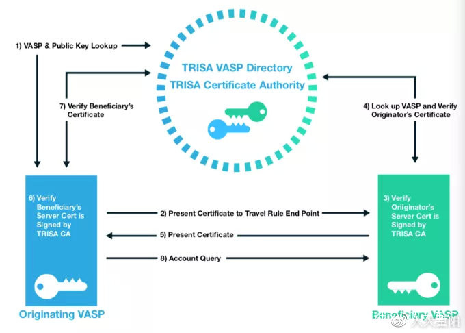 2019年6月美國金融行動特別工作組規定,所有的數字資產服務商要在2020年6月30日前執行旅行規則,要KYC(瞭解客户身份)。CipherTrace公司不但開始對此進行研究,它也開發了TRISA系統。TRISA系統作為一個廣義化的追蹤系統,所有單位都需要在TRISA系統上註冊。這樣一個TRISA系統就變成了一種監管網,變成了註冊中心。在TRISA系統註冊過的交易所代表着會被認可,如果未在上面註冊,就會被認為是不合法的,銀行會以交易所未在TRISA上註冊為由,不讓交易所在銀行進行開户等操作。所以,TRISA網絡系統慢慢變成了一個監管網,所有在已經註冊的金融機構上的交易都可以經過這系統而監管到。