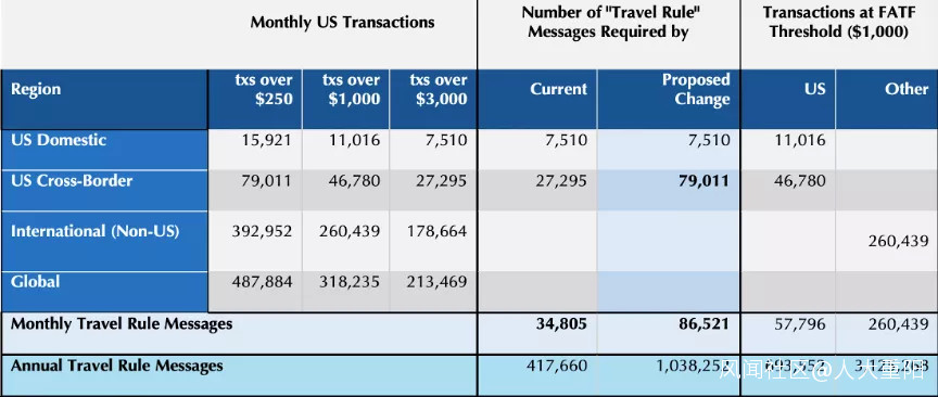 旅行規則指出每一筆交易到底有多少人,這邊分成美國本土、美國跨境支付、國際和全球四個區域。