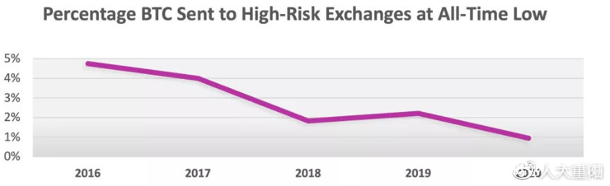 圖8: 越來越少比特幣經過高風險的交易所