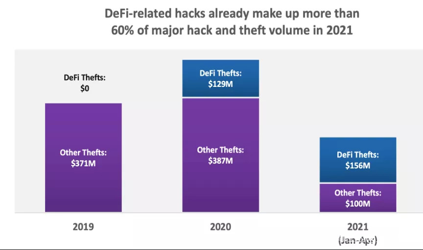現在所謂的欺詐事件和黑客事件大部分發生在DeFi上,傳統的數字代幣已經不產生嚴重問題了。很多人認為DeFi是一個巨大的突破,但現在它也是問題的聚集中心。