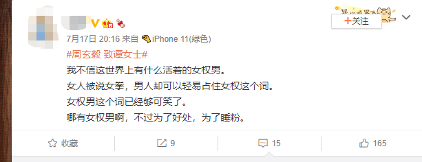 我並不自詡女權男,反而經常被自詡女權的人罵,但我去看周玄毅很多和性別相關的微博,覺得還是有一些道理的。