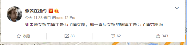 如果把所有支持女權的男博主都定義為“想睡女粉”,那支持男權的男博主是為了啥?