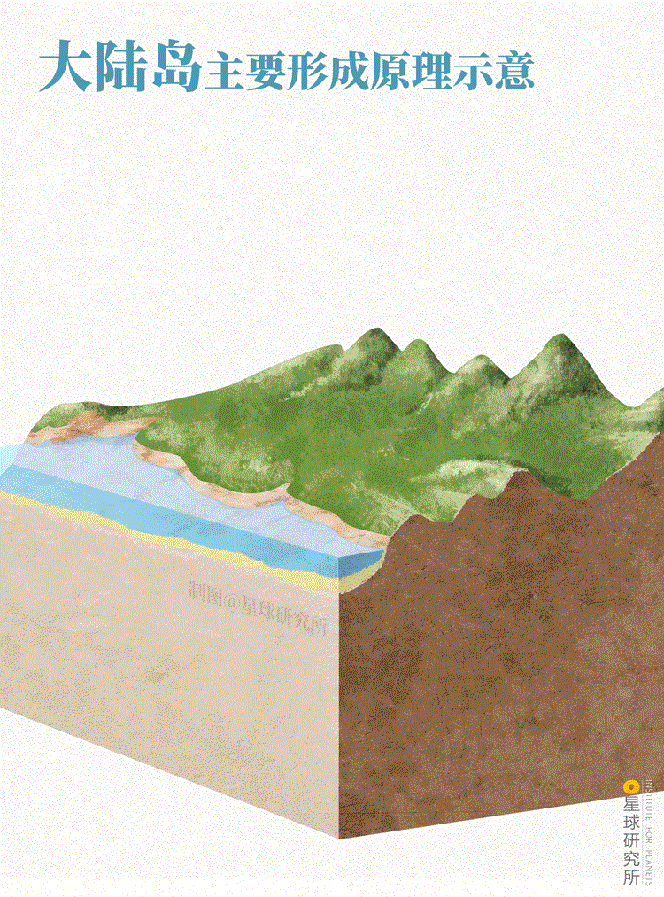(大陸島主要形成原理示意圖,製圖@鄭伯容/星球研究所)