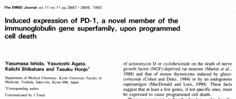 時間倒退回1992年,時年50歲的日本科學家本庶佑率先揭開了PD-1的神秘面紗。