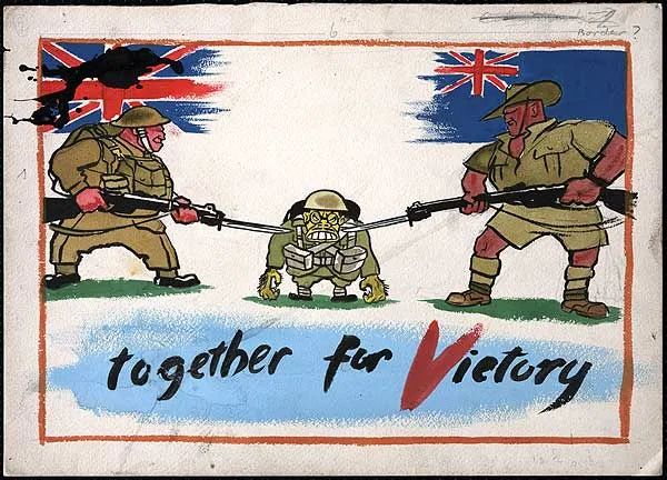 二戰時期英、澳一家親打敗日本的宣傳畫