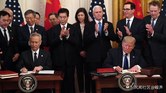 開年1月15日,中美簽署第一階段貿易協定。這一協定的簽署為特朗普總統樹立了對中國強硬並在兩國貿易談判中佔據上風的形象。特朗普總統躊躇滿志,春風得意,特意把協定的簽署儀式放在白宮,並且越俎代庖,代替美方貿易談判代表在協定上簽字,同時享受着副總統彭斯的熱情讚美。