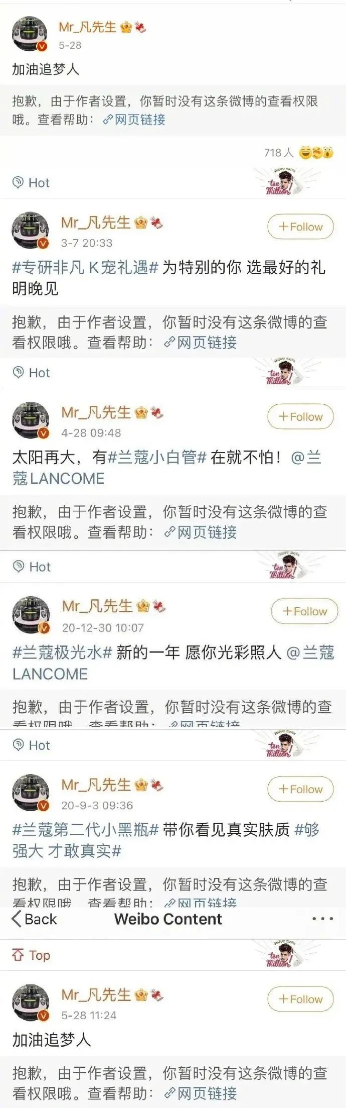 多個品牌方也已經刪除或隱藏了吳亦凡代言的微博。