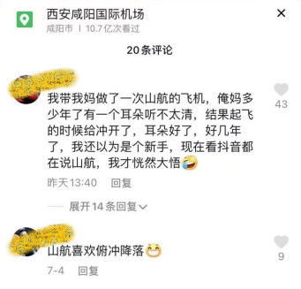 網友們形容山航速度快的段子也層出不窮↓“起飛:chua!落地:duang!”“