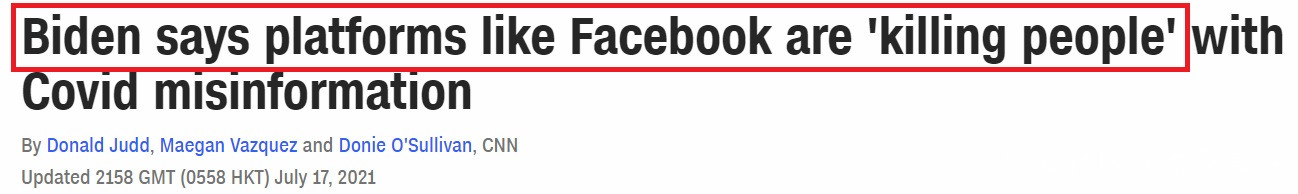 CNN: **隨着白宮加大對社交媒體上有關該流行病的虛假信息的言論,**總統喬拜登週五表示,像 Facebook 這樣的社交媒體平台正在用圍繞 Covid-19 大流行的錯誤信息“殺人”。