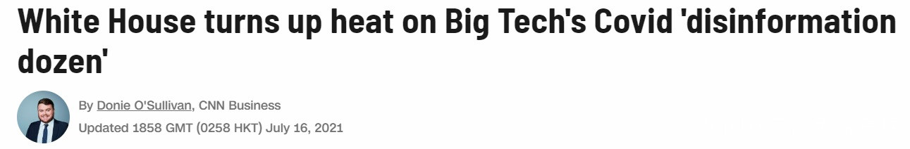 白宮週四加大了對硅谷的壓力,要求他們處理疫苗錯誤信息,特別是將 12 個人挑出來,稱他們為“虛假信息十二人組”,稱他們應對有關 Covid-19 的大量錯誤信息負責。