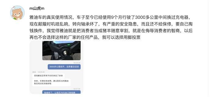 關於產品的質量投訴案例如此之多,也不怪雅迪此次再戰高端市場的舉動普遍不被業界看好了。