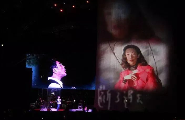 林憶蓮一襲紅衣隔着大屏看上去恍如隔世。