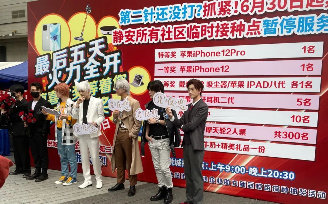 還有隔壁那個靜安大悦城,安排了五位帥哥玩家陪你打疫苗,美其名曰“未婚夫陪你打疫苗”。