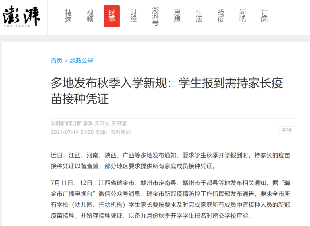 這個暑假,廣西貴港兩地的熊孩子們迎來了一個“好消息”,家長如果不接種疫苗,他們就可以不去上學。