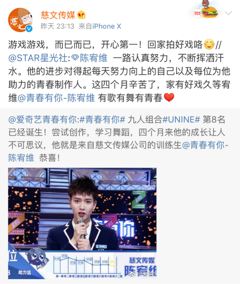 正如《青你》第一季決賽夜慈文官博發言所説,選秀對他們而言更像是一場遊戲,回家拍戲才是正途。