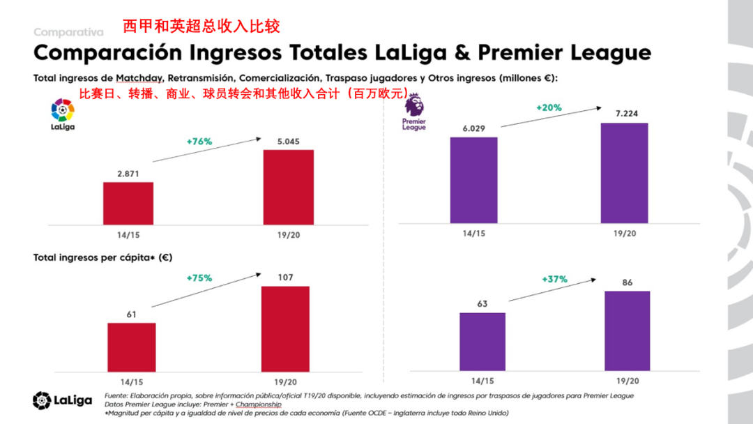 這裏需要解釋下,英超創建伊始便採用的轉播權打包售賣模式,對西甲來説卻是個新鮮事,他們直到14/15賽季開始才趕上潮流,而這正是發生在特瓦斯2013年上台之後。