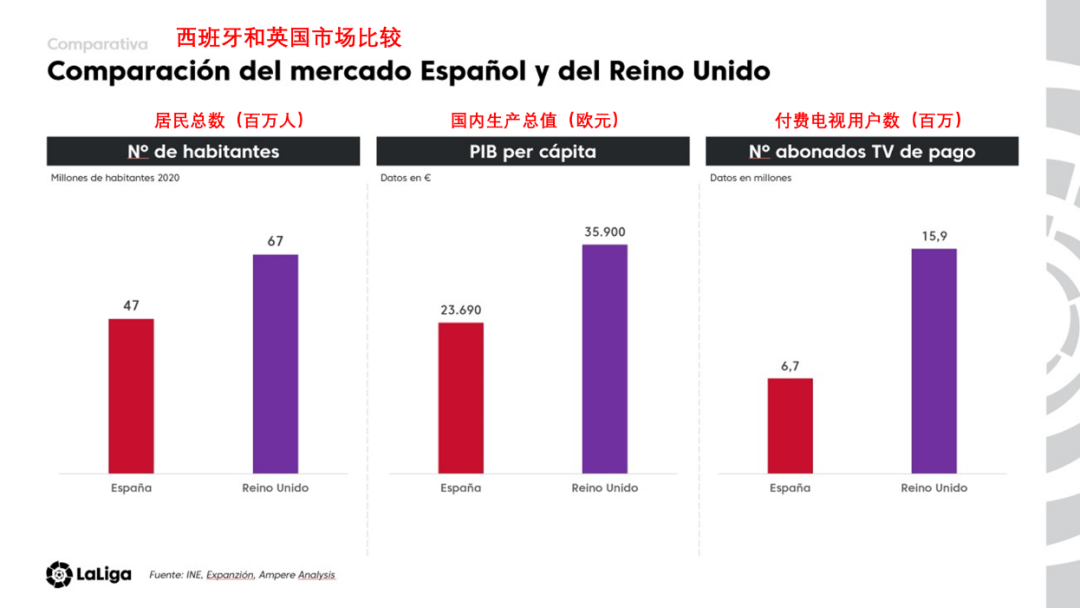 瓜帥所要求的追上英超也實在強人所難。身為“歐豬五國”一員,西班牙在人口、國內生產總值和付費電視用户數方面距離英國甚遠,而西語也遠不如英語便於推廣,這就註定了西甲無論是國內市場還是國際市場,都很難與英超相提並論。