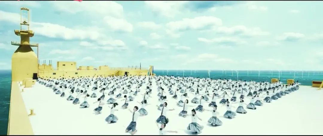 終場的海上平台舞蹈也是一個300人舞曲陣仗,依然是從全國招募最強的舞團,甚至有職業舞蹈老師混入其中,他們先用十天時間熟悉舞步,接着用七八天的時間進行拍攝,其中一個不到20秒的男女舞者交互的段落用了整整一天的時間,這支5分鐘的舞蹈足夠代表當代中國最頂尖的舞者水準。